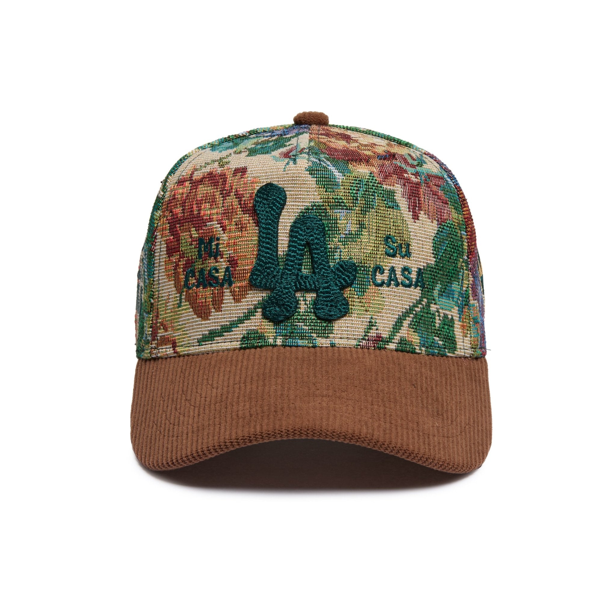 The Mi Casa Su Casa hat is all about warmth, welcome, and repping that open-door energy. Made with a classic foam front, mesh back, and bold green puff embroidery, it's the kind of hat that says what it means—no translation needed.