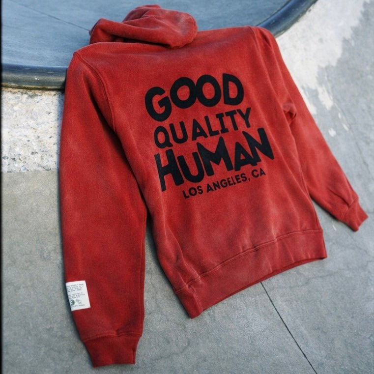 Meet the hoodie that represents comfort, culture, and kindness. The Good Quality Human Red Hoodie is a signature streetwear staple designed in Los Angeles and made for everyday wear. With its bold back graphic and perfectly worn-in feel, this hoodie blends premium comfort with a message that stands out.