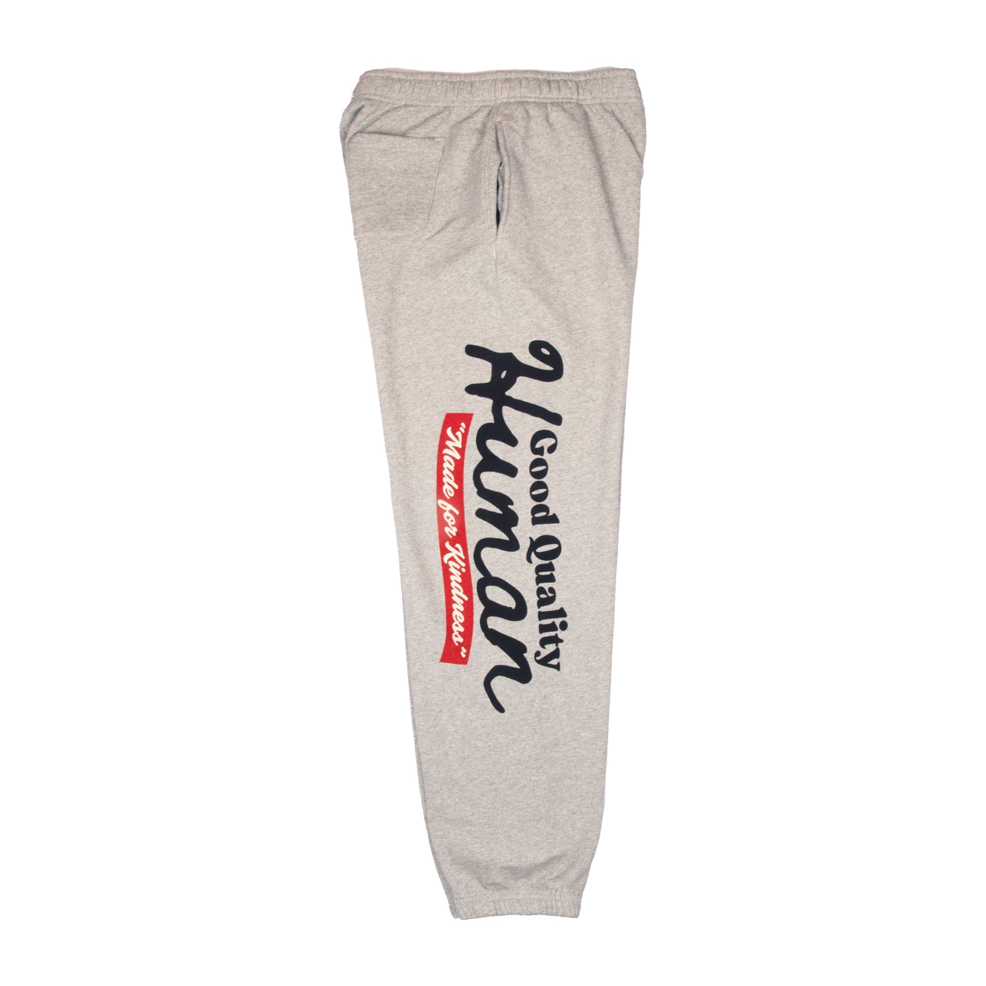 Meet your new everyday essentials. Our Made for Kindness Sweatpants in heather grey are designed for comfort, softness, and effortless style—perfect for pairing with the matching zip hoodie or wearing solo. Featuring the bold vertical Good Quality Human graphic on the left leg, these sweats make a quiet statement with a powerful message.